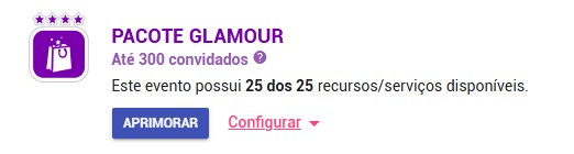 Você verá um grupo de informações similares à da imagem acima. Clique onde aparece a “?” ao lado do texto “Até X Convidados “. Onde X, no nosso exemplo, é 300. Você será levado às informações específicas sobre os limites de convidados.